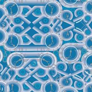The black stripes with crossing red, blue & yellow to form a geometry. Learn MoreStripes - Swirl