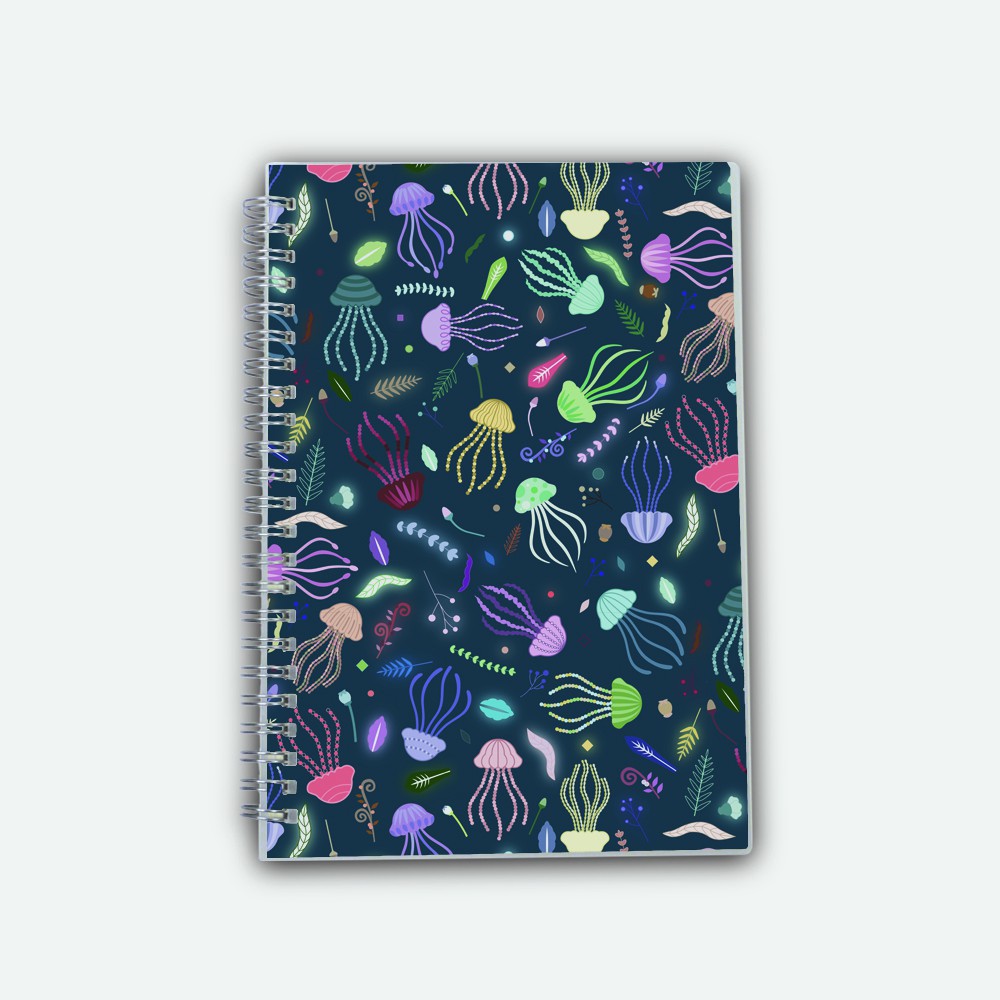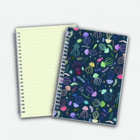 Poly Cover Notebook A5 Ruled Line- Jellies World - Night Swim
